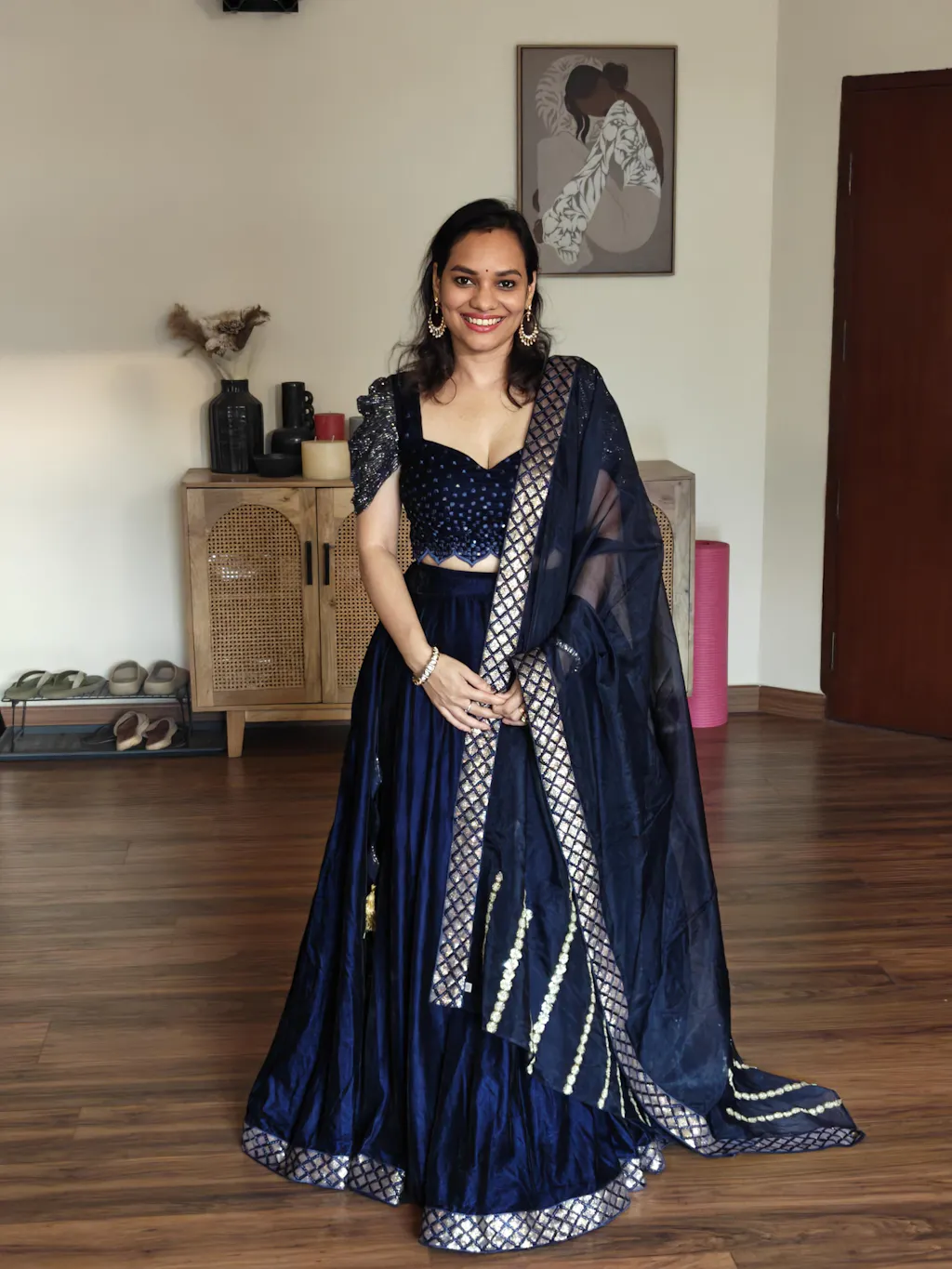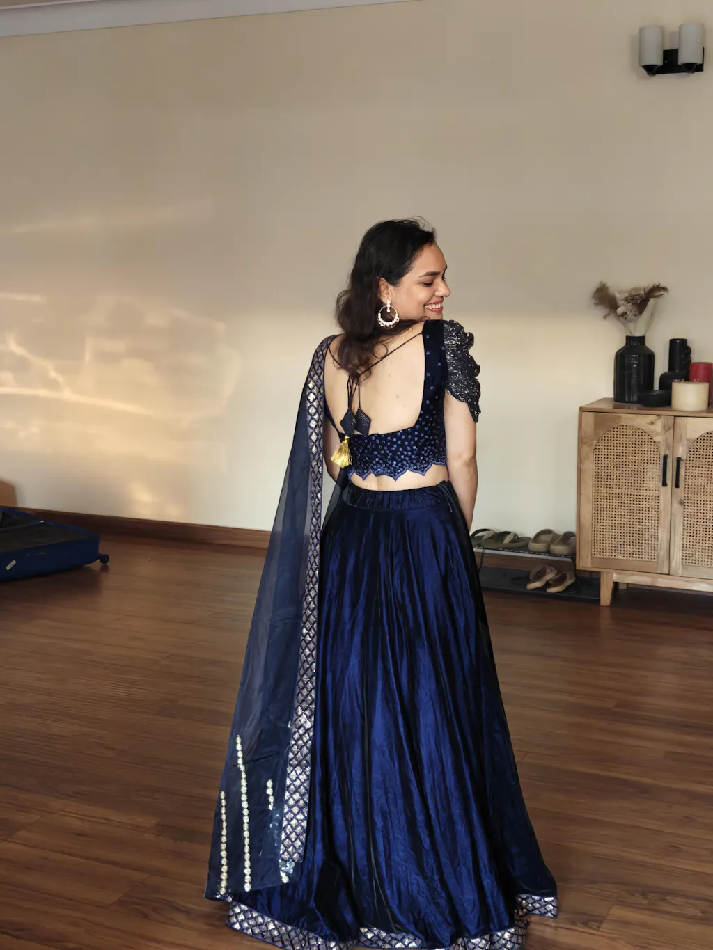 Victoria Blouse, Lehenga & Dupatta- Blue
